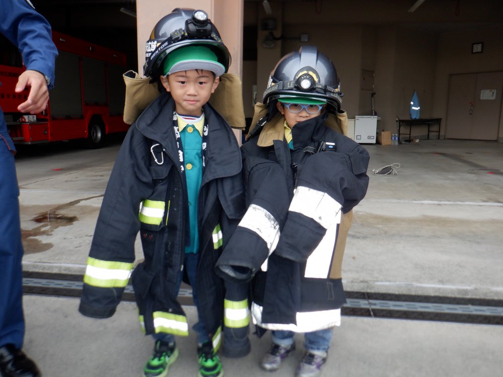 隊員の方が実際に着ている消防衣を着せてもらいました。