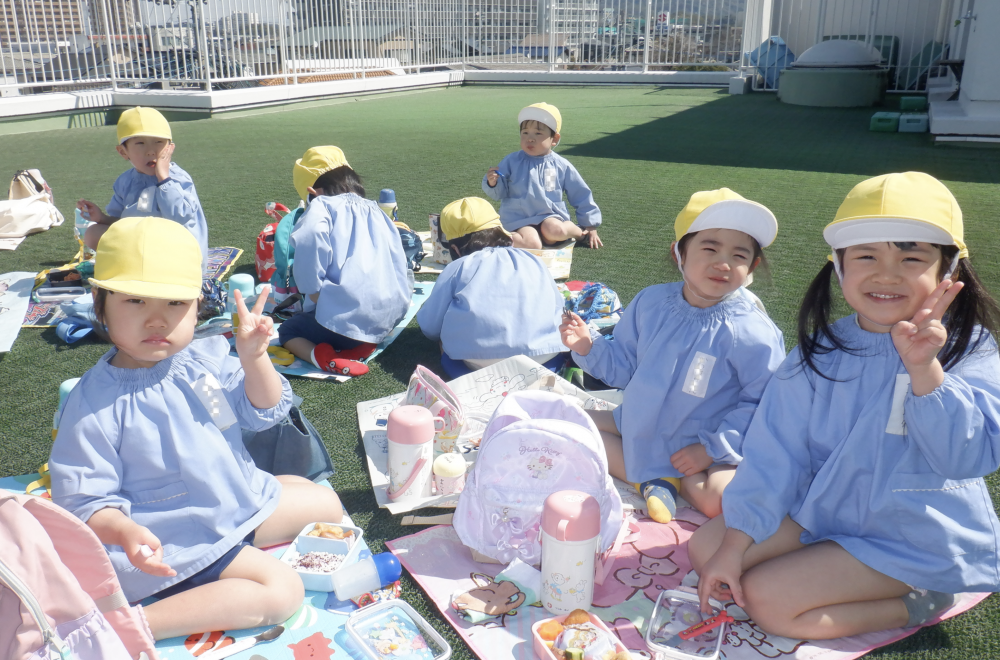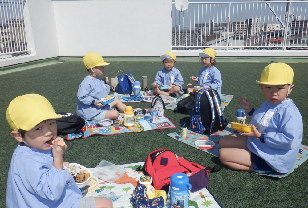 屋上でお弁当を食べました。