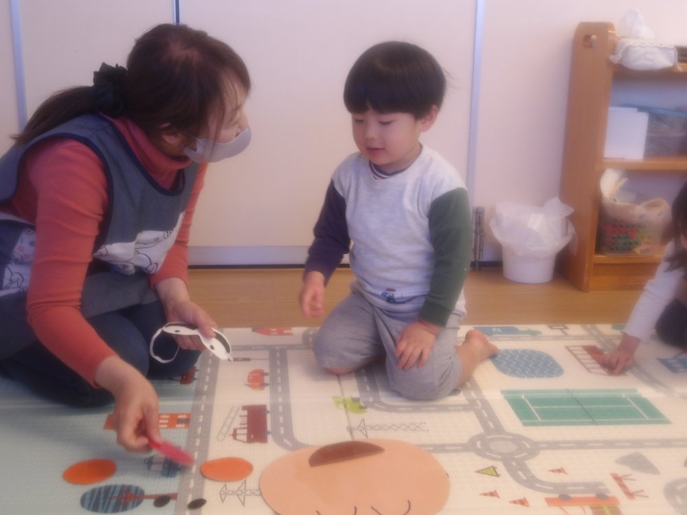お正月遊びとして福笑いを楽しみました。